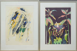 Hans Meyer Petersen født 1937 & Poul Janus Ipsen født 1936. Kompositioner, seri- og litografi. 86/275 og 3/100. Sign. samt dateret. Udgået fra galleri Torso, Odense. 66 x 45 cm. (90 x 68) cm. & 70 x 49 cm. (92 x 71,5) cm. (2)