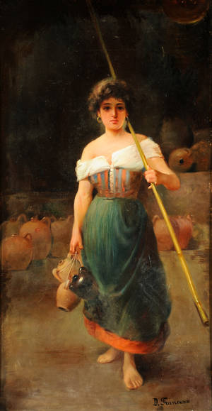 Ubekendt kunstner. Italienerinde, olie på lærred, sign. D. Francesco, 57 x 30 cm.