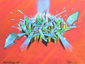 Bates, graffiti på duk, spray, airbrush och tusch. Av konstnären betitlad. 40x50 cm. Oramad. Bates (All in One, COD, TNB, 156, WCA, PCP, WR, Läs mer...