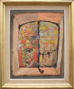 OKÄND KONSTNÄR, 1900-tal, komposition, olja på pannå, bildmått ca 68 x 48 cm. Ej examinerad ur ram, signerad , dedikerad och daterad, Lars Wallin 1965. Läs mer...