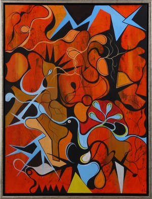 Bent Larsen. Komposition, olie og akryl på lærre...