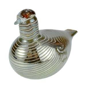 Metallisk. Signerad undertill 'Oiva Toikka Nuutajärvi'. Höjd 13.3, längd 17 cm.