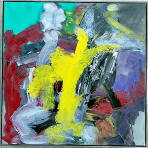 H. Kolind. Akryl på lærred. Komposition, sign. bagpå Kolind. 80x80(84,5x84,5)