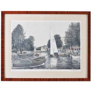 Reinhold Ljunggren (1920-2006), Sverige. Signerad, numrerad 133/310. Färglitografi, bildmått: 32x43 cm, yttermått inklusive ram: 48x59 cm. Reinhold Ljunggren, född 1920 i Vittaryd, död 2006, svensk Läs mer...