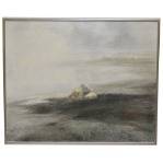 Motiv av landskap i dimma med stenar. Signerad och daterad 86. 81x100 (84x105).