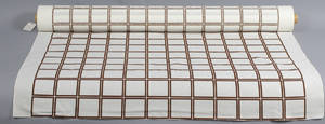 Curt Lagerström, "Skala 3, brun". Bomullstyg på rulle, ca 39 m, bredd 1,3 m. Formgiven på 1970/80-talet. Tryckt av Ljungbergs Textiltryck. Oanvänt.
