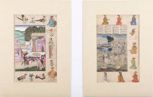 OIDENTIFIERAD KONSTNÄR, 2 st, indopersisk blandteknik, figurscener, ca 30x20 cm vardera. En med smärre hål.
