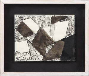BONNIÉR, Olle (född 1925): Komposition, signerad och daterad Olle Bonnier -57, blandteknik, 13x17 cm. 128641.