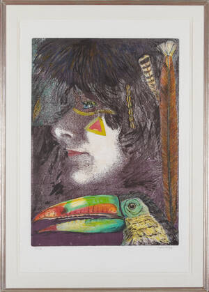 BERGH, Anders (född 1939): Komposition med fågel, signerad Anders Bergh, 86/170, färglitografi, 78x55 cm. 131092.
