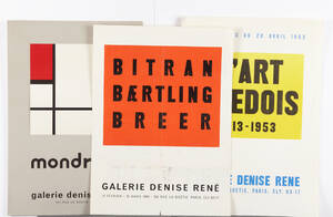 AFFISCHER 3 st. Galerie Denise René, Paris, 1950-tal, L´art suedois, Baertling, Mondrian, 51x38 cm, oramade. Veck, missfärgningar.