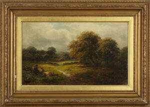 OIDENTIFIERAD KONSTNÄR (England 1800-tal, möljgen Thomas WADE 1829-1891): Rastande sällskap, signerad och daterad T Wade 71, olja på duk, 30x50 cm. 149307.