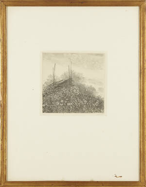 BORGLIND, Stig (1892-1965): "Sommarnatt", 1940, signerad Stig Borglind, kopparstick, etsning och torrnål, 18,5x19,5 cm. 154170.