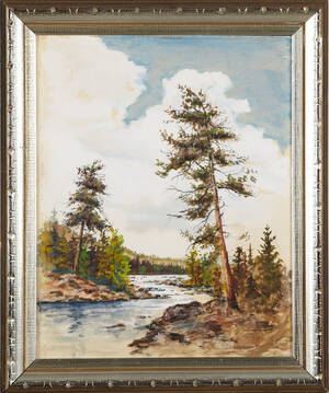WALLQUIST, Einar (1896-1985): Landskap med älv, signerad och daterad Einar Wallquist 67, akvarell, 30x25 cm. 190207.