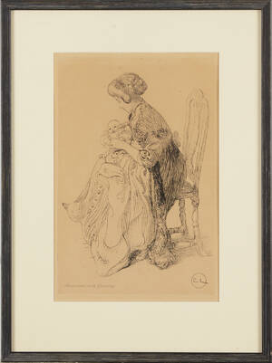 Carl Larsson, "Påssjukan" (Esbjörn) Etsning, 1912, signerad med blyerts. P. 17,9 x 24,7 cm. Ej examinerad ur ram, fläckar, gulnad. Läs mer...