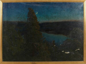 ERDTMAN, Elias (1862-1945): Nattbild, insjö, signerad och daterad E Erdtman 1903, olja på duk, 120x165 cm. Skador och färgbortfall.