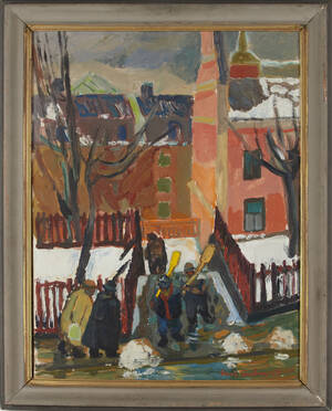 LINDBERG, Harald (1904-1976): "Snöskottare, Mossebacke trappor", signerad och daterad Harald Lindberg -35, olja på duk, 81x60 cm. 188896.