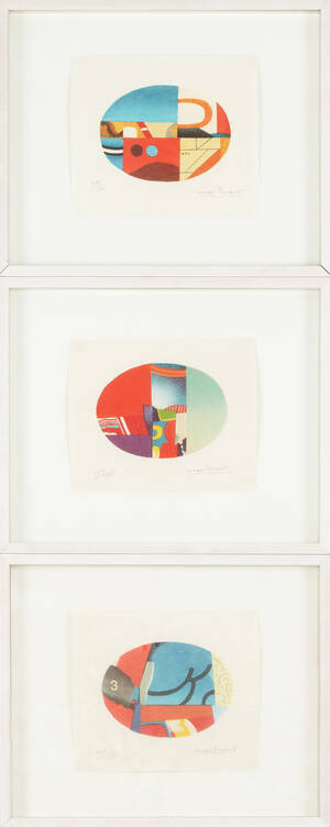 PAPART, Max (1911-94) (3): Kompositioner, signerade, numrerade 134/175, 12x17 varderar, färglitografier. 163745.
