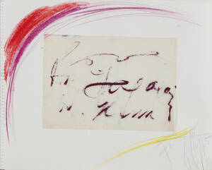 EDDIE FIGGE (1904-2003): Komposition, signerad Eddie Figge 2000, krita med metall på papper, ca 46x38 cm . Kantveck. Läs mer...