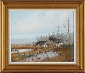 KOHLMANN, Ejnar (Finland, 1888-1968): Älgar, signerad Ejnar Kohlmann, olja på duk, 50x61 cm. 164800.