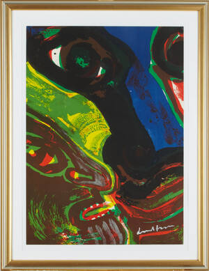 Bengt Lindström, "Laura/Auran". Signerad Lindström. Utförd 1994. Duk 92 x 73 cm. Ett äkthetsintyg från Comité Bengt Lindström medföljer. Ytsmuts. Färgbortfall. Några ytliga fläckar. Några Läs mer...