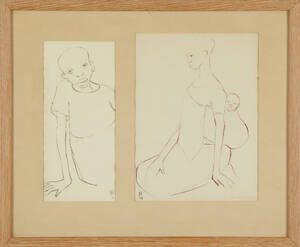 HANSSON, Berta (1910-94): 2 st., samramade "Mor och barn, Minene", monogramsignerad BH -53, 29x13 resp 30x22 cm. 177970.
