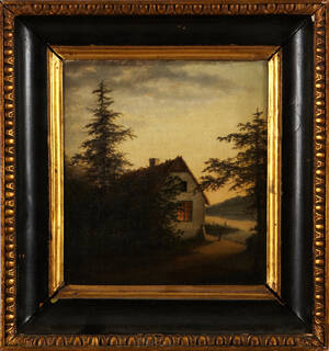 OIDENTIFIERAD KONSTNÄR, Danmark, 1800-talets början, "Ved Esrum Sö", otydligt signerad, i samtida ram, 22x19,5 cm. 176264.