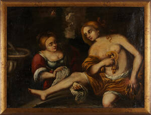OIDENTIFIERAD KONSTNÄR, Batsebas tvagning, olja på duk, 71x96 cm . Duklagningar, dukskador.