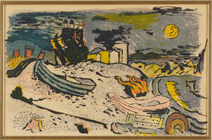 ERIXSON, Sven X-et (1899-1970): Strandbild, signerad Sven Erixson -48 , färglitografi, 37x57 cm. Gulnad.
