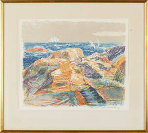 Harald Lindberg (1901-1976), Sverige. I norska havet. Signerad, numrerad 38/360. Färglitografi, bildmått: 38x52 cm, yttermått inklusive ram: 50x65 cm. Harald Lindberg, född 1901, död 1976, Läs mer...