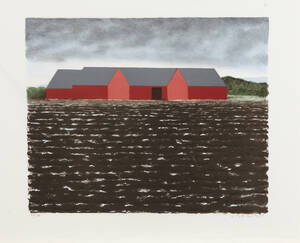 SCHANTZ, Philip von (1928-1998) (2): Ladugårdar vid plöjd åker, signerade och daterade v Schantz -95, färglitografi, bladmått 45x54 cm vardera, oramade. 168940.