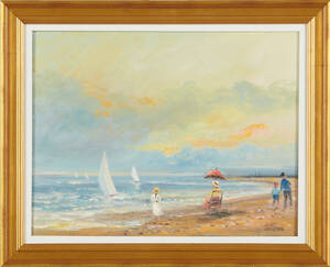 Bengt Fransson (f. 1935), Sverige. Signerad, Kust, familj, Olja på duk, 26x34cm, yttermått inklusive ram: 37x44cm. Bengt Fransson, svensk målare född i Östanåbruk 1935. Läs mer...