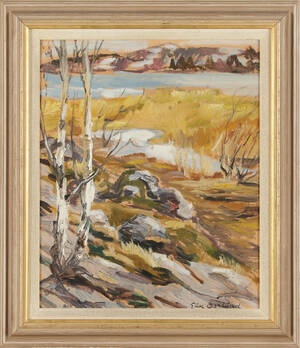 OSSLUND, Erik (1913-82): "Svenskt land", signerad Erik Osslund, olja på pannå, 46x38 cm . 191906.
