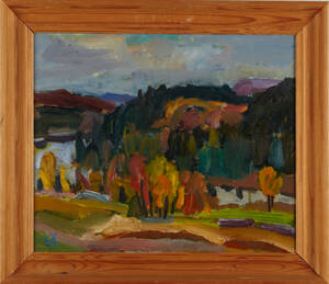 ÄRLINGSSON, Erling (1904-1983): Landskap, (Ulvsjön), monogramsignerad EÄ, olja på pannå, 46x56 cm. 200290.