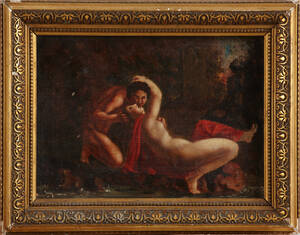 OIDENTIFIERAD KONSTNÄR (1800-tal): Mytologisk motiv, olja på duk uppfodrad på papp, 19x25,5 cm. Lagningar, uppfodrad, färgbortfall.
