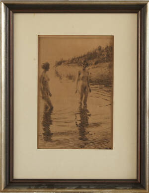 Anders Zorn, Zorn, "De två". Etsning, 1916, signerad med blyerts. P. 19,6 x 14,6 cm. Ej examinerad ur ram. Något gulnad. Läs mer...