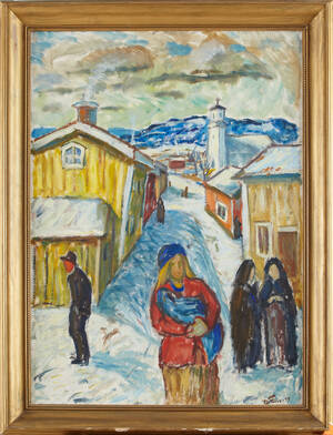 ELLIS, Bengt (1923-2006): "Bort från byn", signerad och daterad B Ellis -49, olja på duk, 100x74 cm. 204813.