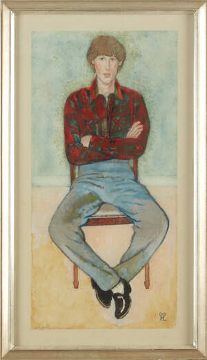 LINNQVIST, Hilding (1891-1984): Ung man, signerad HL, akvarell, 63x31 cm. 205537.