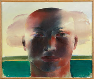 Alf Olsson, ansikte. Signerad, daterad 1970. Olja på duk, 60x75 cm. Alf Ragnvald Olsson, svensk målare, grafiker och skulptör född 1925 i Gärdslöv på Söderslätt. Läs mer...