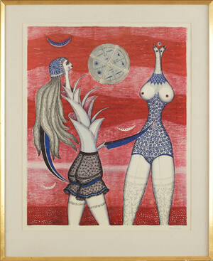 Max Walter Svanberg, "Min kärlek till G" Signerad Max Walters och daterad -53. Akvarell/gouache 49 x 62 cm. Ej examinerad ur ram. Läs mer...