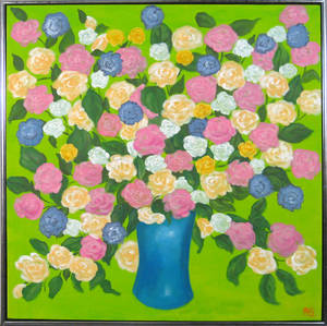 Anni Grøndahl. Akryl på lærred. 'Blomsterflor'. Sign. AG. 100x100 cm.