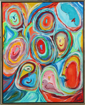 Anni Grøndahl. Akryl på lærred, ´maskekomposit...