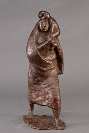 kvinde med barn. Ib Braun 1933-2003 cd, bronze i form af gående Signeret. H. 42,5 cm.