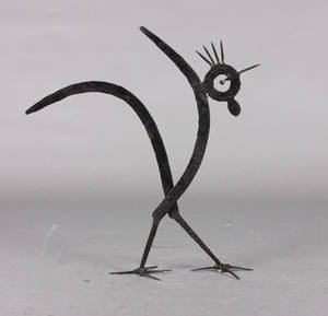 Skulptur af jern i form af fugl, usigneret H. 41 cm. Fremstår lettere anløbet.