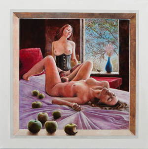 Mark Stolk f. 1964. Olie på kanvas, komposition 'The old and the new Eve'. sign. M. Stolk 2013. 100x80 cm UR. Mark Stolk blev født 27. Läs mer...