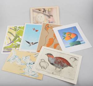 En samling grafik, färglitografier, blandade konstnärer. Bestående av 9 st Batte Sahlin, 4 st Åke Nilsson, 1 st Sven Frithiof, 4 st Bernt Jonasson. Signerade. Läs mer...