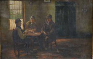 Tony Lodewijk George OFFERMANS (1854-1911), 'Kartenspieler', Öl auf Leinwand, unten rechts signiert. Bildmaß B 54 cm, H 36 cm, Rahmenmaß B 71 cm, H 53 cm. JH Transport kann diese Ware zum JH-Lager in Ishøj für DKK 300 + dänische MwSt. oder zu jeder Adresse in Dänemark zu dänischen Inlandspreisen transportieren.