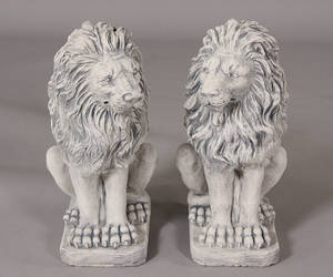 Haveskulpturer. Par løver af frostsikret, støbt stenmateriale. H. 53 cm., 39 kg. stk. Obs: skal læsses på egen hånd ved udlevering. (2) Modelfoto. Läs mer...