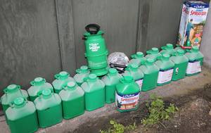 Dulux Sprayable träbehandling för staket, 20 dunkar om 5l samt 2 sprayanordningar för applicering. Färg furu.Färgsättning, underhåll och skydd, framför allt för obehandlat trä. 5l räcker till 19 m² med en påstrykning, total täckning 1425 m². 2 Sprayanordningar medföljer. (22)Observera: korrigering av antal och värdering.