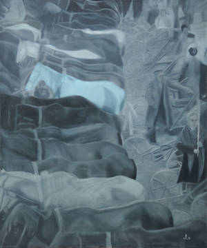 Michael Thierry f. 1948. Olie på lærred. Betitlet: "Dreng". Sign. med monogram samt dateret 05. 165 x 100 cm. Maleriet stammer fra serien "Avisbilleder". U.R. Läs mer...