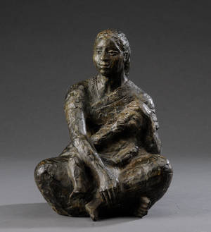 Ib Braun (1933-2003): Siddende kvinde, bruneret br...